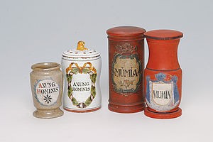 Digging brings me to the 15th century, European practice of digging up graves for the preparation of mumia, a brown paste/powder of mummified human flesh, prepared with special "recipes", used to treat epilepsy, nausea, haemorrhage and was a miraculous cure-all treatment.
